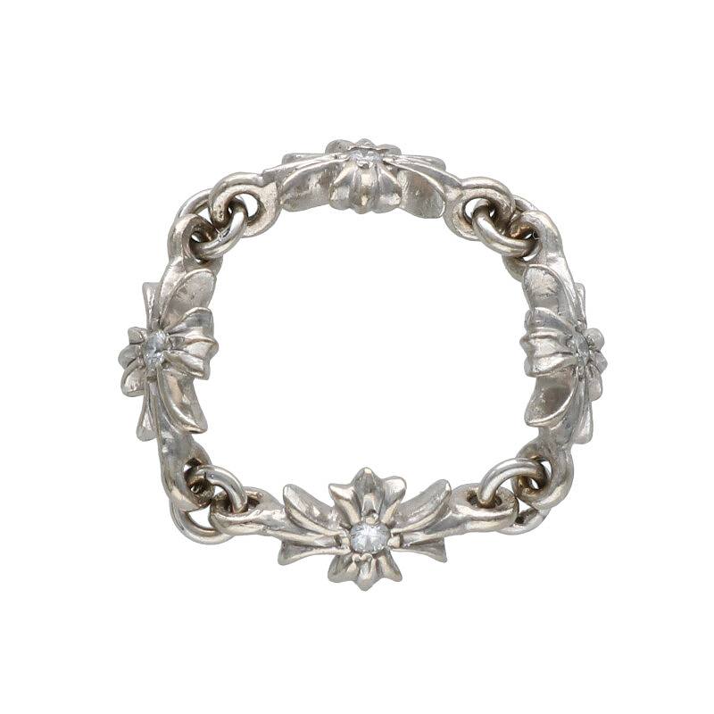 CHROME HEARTS FLORAL CROSS SILVER RING W/PAVE DIAMONDS クロムハーツ フローラルクロス リング パヴェダイヤ