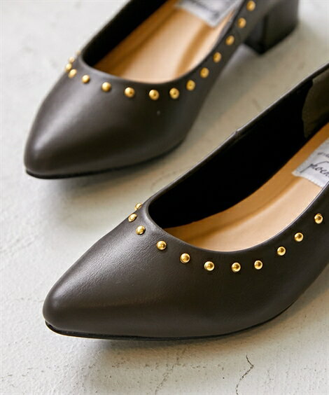 パンプス 大きいサイズ レディース スタッズ デザイン 低反発中敷 ワイズ4E 靴 グレー/ブラック/ボルドー 23.0〜23.5/24.0〜24.5/25.0〜25.5/26.0〜26.5cm ニッセン