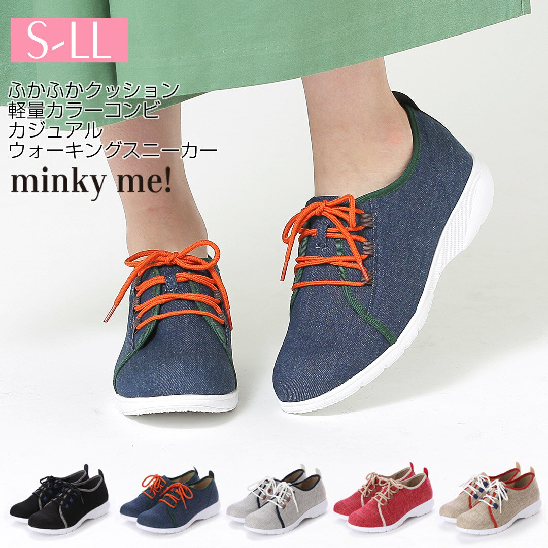 minky me!(ミンキーミー) ふかふか クッション 軽量 カラーコンビ カジュアル ウォーキング スニーカー 楽ちん 春夏 デニム 低反発インソール 歩きやすい バイカラー ブラック デニム グレー ベージュ レッド ネイビー 靴