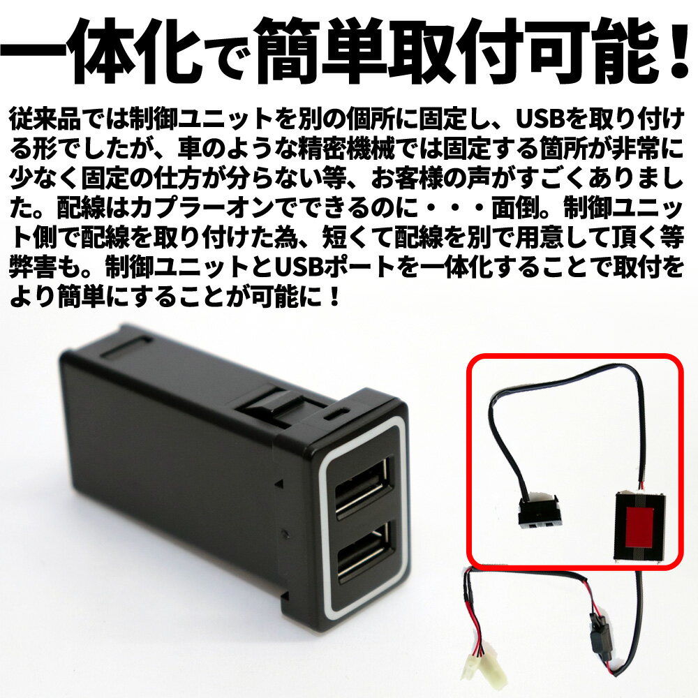 【商品内容】 適応車:200系ハイエース4型以降・その他プリウス・カムリ等 商品内容:USBポート本体・3Aヒューズ付き配線・エレクトロタップ2個 増設スイッチホール 純正スイッチ形状です。